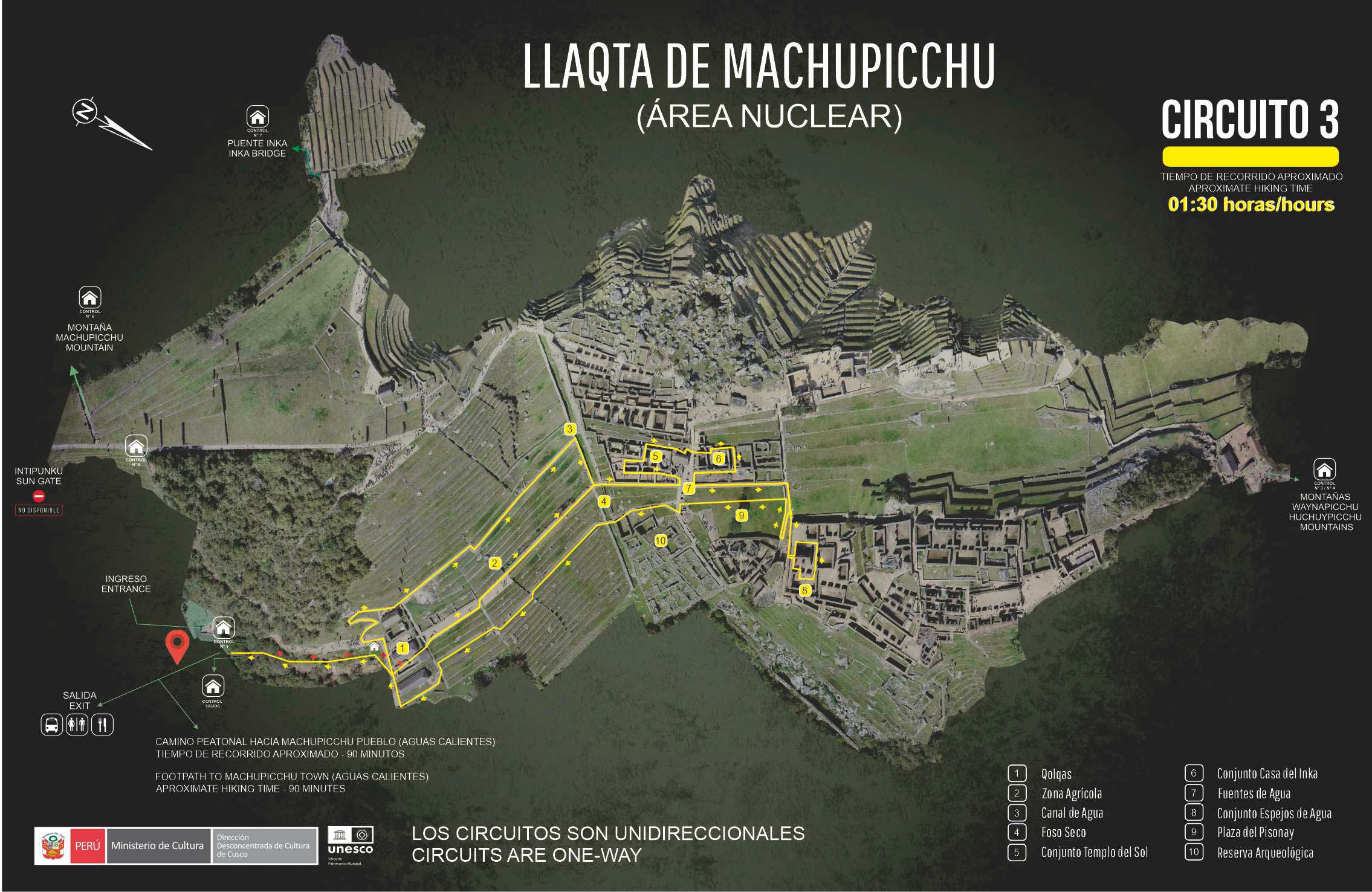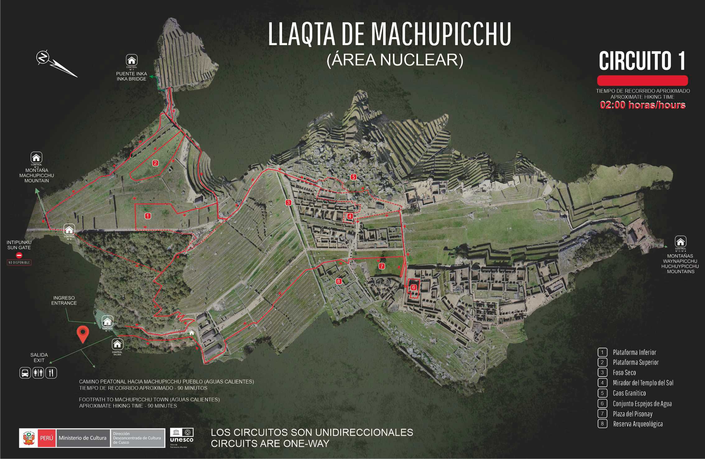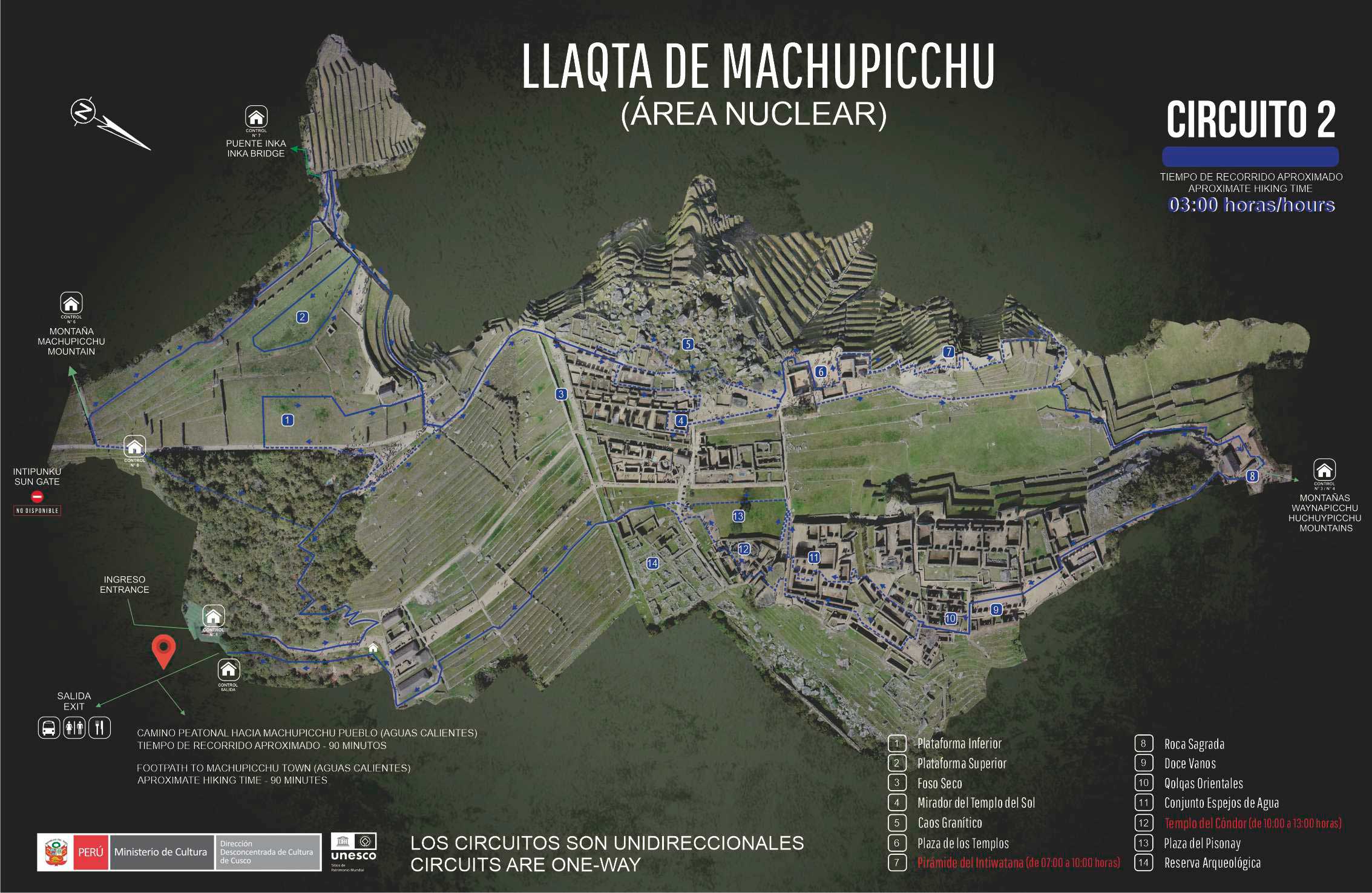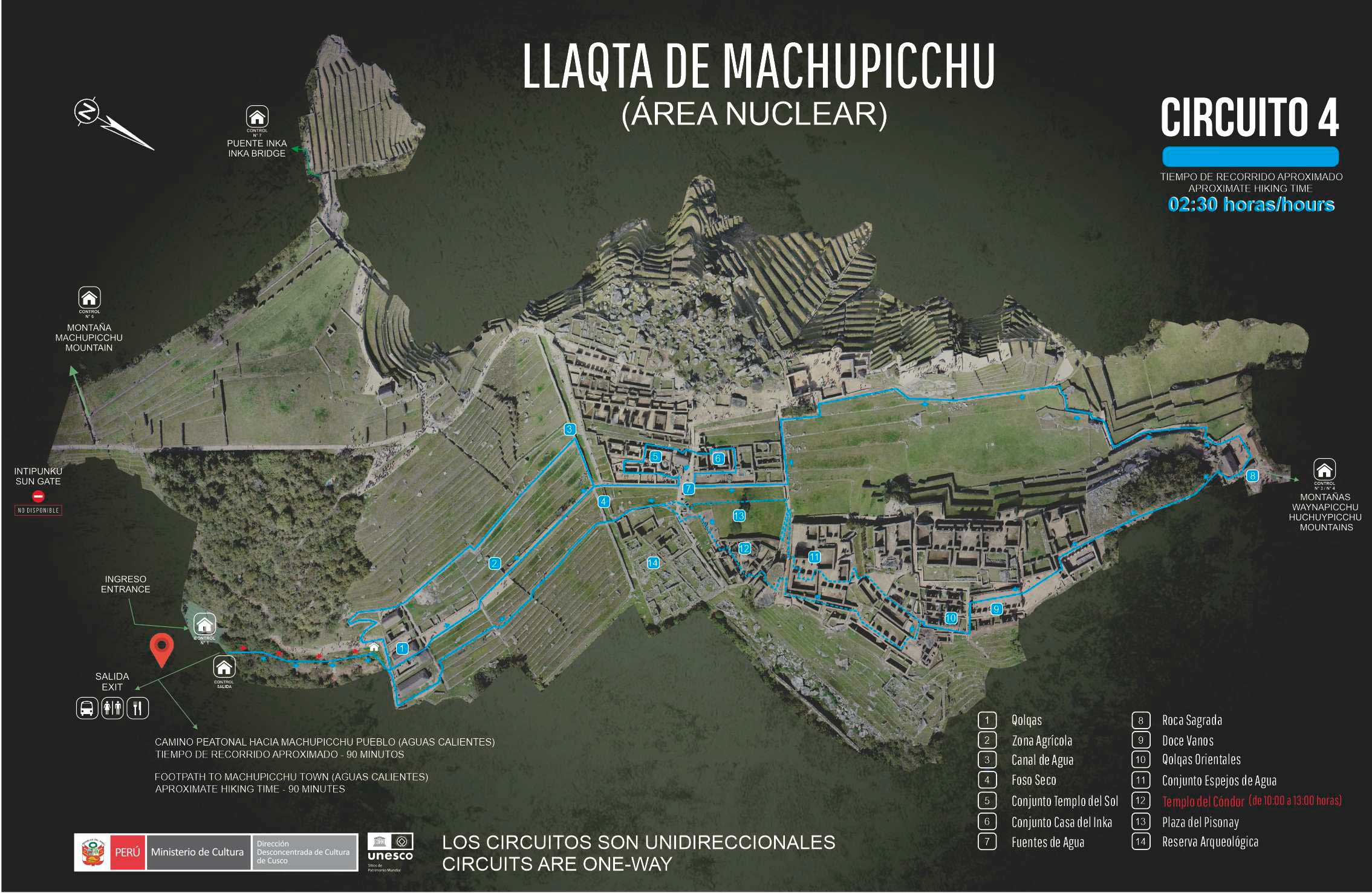 Somente o bilhete que indica "Llaqta de Machu Picchu " permite escolher um dos quatro circuitos estabelecidos. O ingresso que inclui as montanhas Waynapicchu ou Huchuypicchu permite apenas visitar o circuito 4 e o ingresso que inclui a montanha Machupicchu permite visitar apenas o circuito 3.